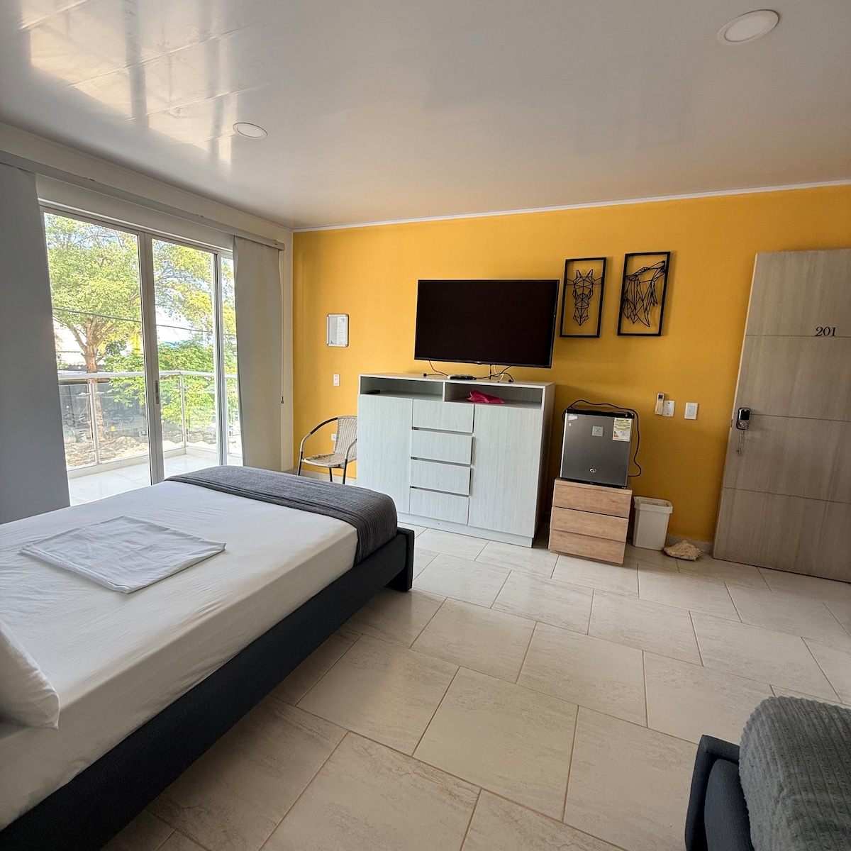 Disfruta de una habitación cómoda y privada con 2 cama doble y 1 cama sencilla, aire acondicionado, ventilador, TV Smart y baño privado. Estamos a solo 5 minutos caminando de las playas más hermosas de Capurganá, en un espacio acogedor, con todas las comodidades para disfrutar al máximo tus vacaciones.