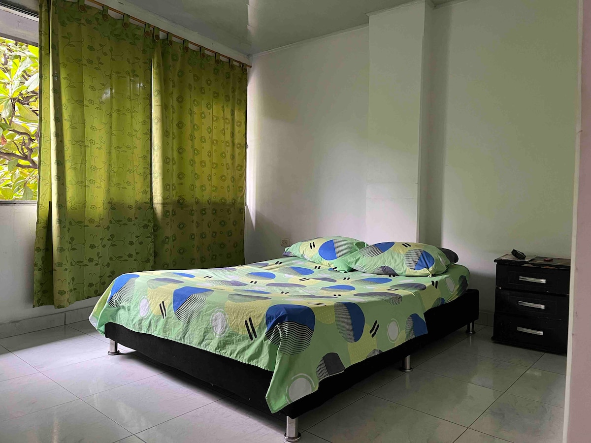 Habitación Privada moderna con 2 camas una doble y una individual, consta de baño privado, agua caliente, escritorio, closet, televisor, nevera, aire acondicionado, wiffi, desayuno incluido.