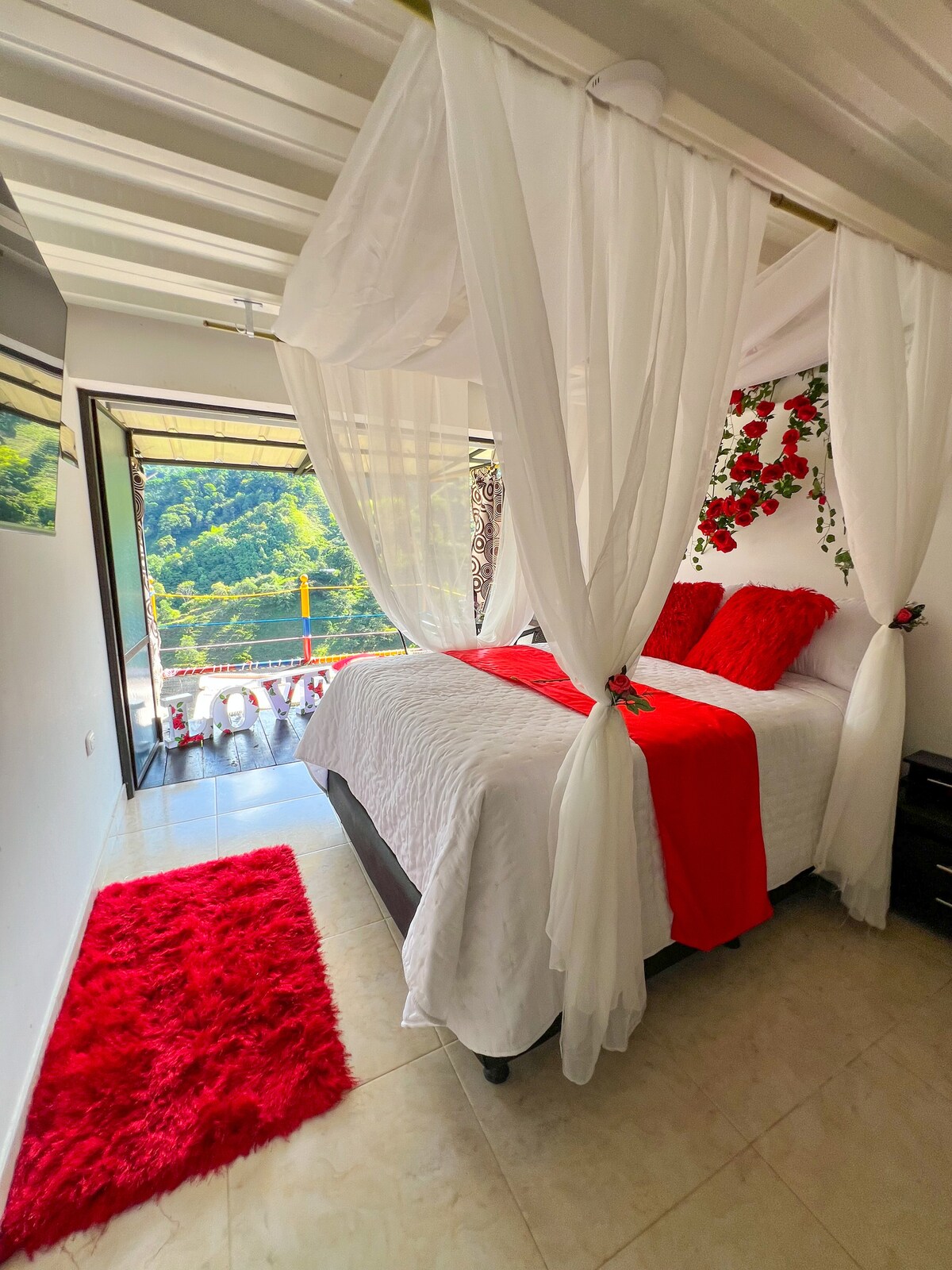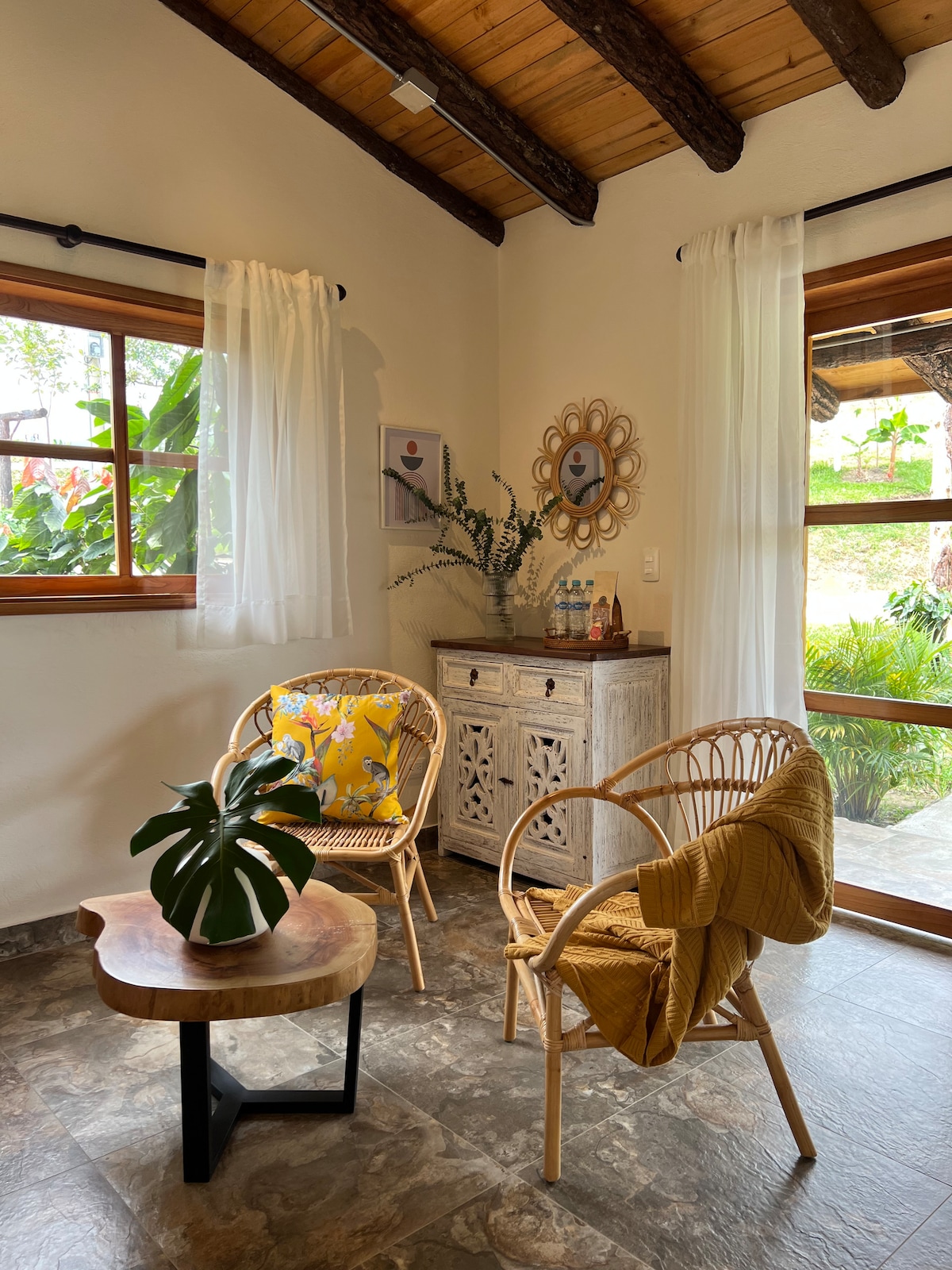 Relájate en este espacio tan tranquilo y elegante. Esta es la habitación 1 de 4. Es muy bonita y tiene baño grande con jacuzzi, un balcón con vista a cafetales hermosísimo