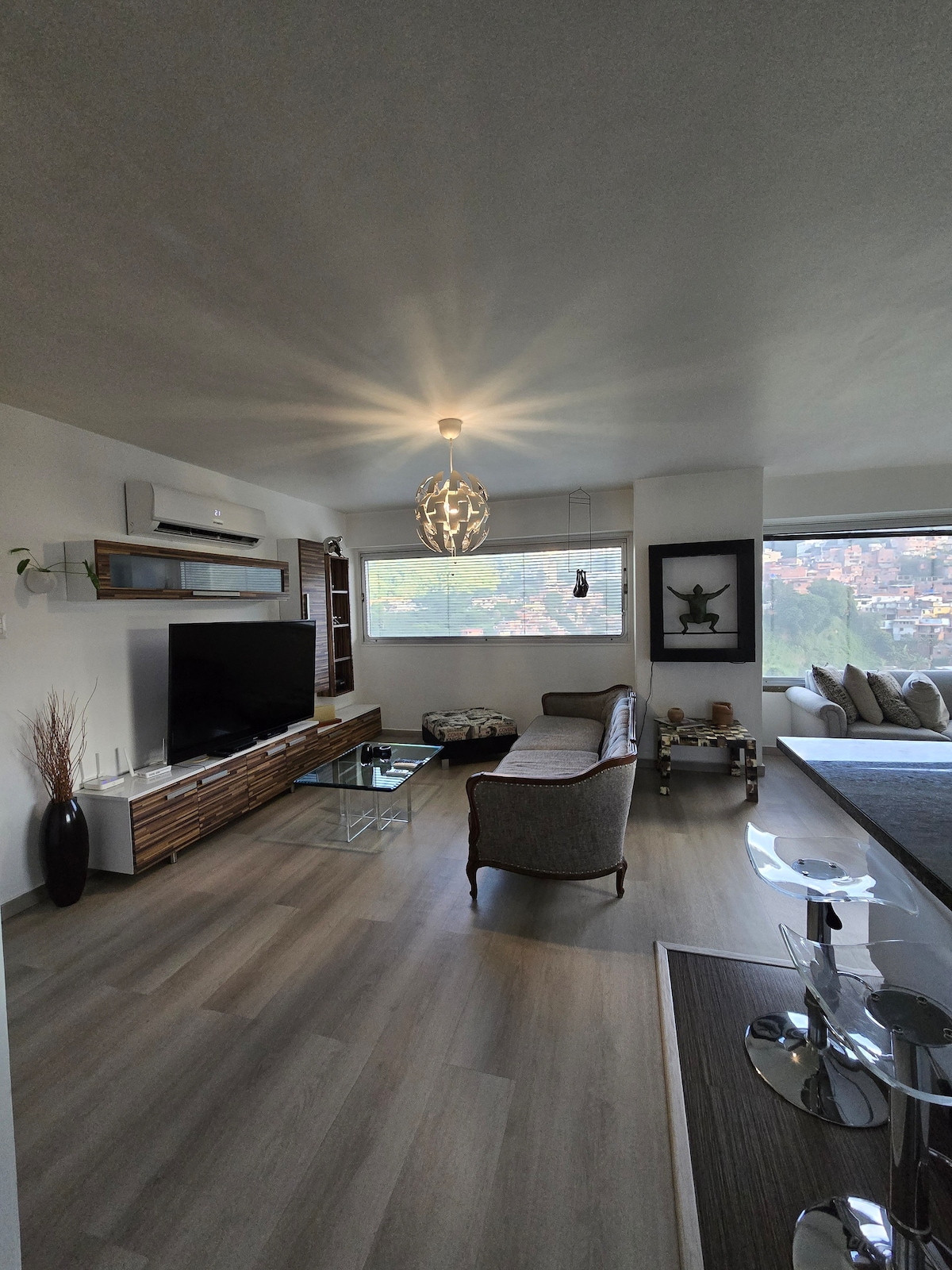 Disfruta de una experiencia elegante en un apartamento nuevo con acabados de lujo, con instalaciones de hotel 5 estrellas Comienza tu día con una tasa de café, disfrutando de una bella vista del Ávila y termínalo con una copa de vino en nuestra terraza con jacuzzi y vista 360 de Caracas. El Jacuzzi y la piscina son áreas comunes del edificio, NO son privadas. Apto totalmente equipado: utensilios de cocina, AC central, WIFI satelital, lencería - No se permiten fiestas o eventos -