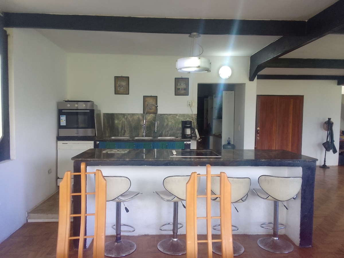 Este elegante alojamiento es ideal para viajes en grupo. Cocina totalmente equipada, bello jardín, 6 puestos de estacionamiento. 1 hab. Master con vestier, baño con ducha y bañera. 3 hab. secundarias con 2 baños y Family room. Pared de escalada, columpios, vista al ávila, área de parrilla con cocina, salón para eventos techado y destechado, baños, Gym, zona de spa con baño. Servicios: Planta eléctrica, Calentador de agua, Internet starlink. Cocina italiana y mobiliario moderno de diseño.