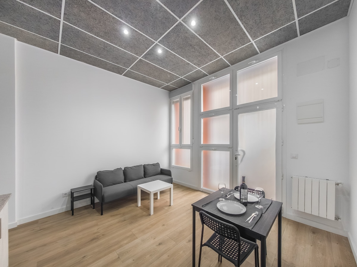 -Relax and disconnect in this quiet and elegant accommodation with a furnished patio perfect for summer and share with your companions and friends -A spacious and bright living room with dining table and smart TV -With a perfect bedroom to marry with a dresser (desk) suitable for makeup or work -Well connected to get to the center of Madrid, 5 minutes from the metro that takes you to the center. We are also a 10-minute walk from the Vista Alegre Palace.