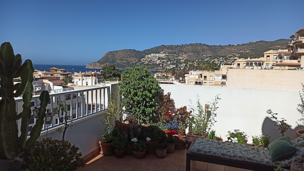 En Julieta's home disfrutarás de magníficas vistas en un lugar especialmente tranquilo, con amplia terraza de 60 m2 orientada al suroeste. Podrás disfrutar de almuerzos y cenas al aire libre bajo una pérgola que consigue un clima más fresco en verano y resguardado en invierno. Está situado en Rincón de la Victoria, al este de Málaga, cerca de la playa.