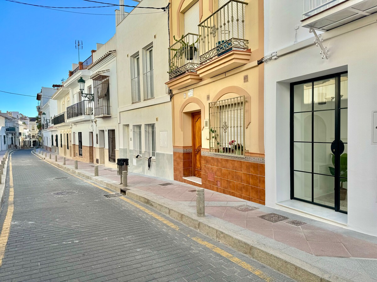 Apartamento de 65 m2 situado en pleno centro de Nerja (Plaza de España) a 1 minuto andando del Balcón de Europa, del acceso a Playa Calahonda, Playa el Salón y Playa Caletilla. El alojamiento cuenta con una gran cocina de vanguardia totalmente equipada, un estupendo salón con sofá cama (140x190), una zona de comedor para 4 comensales, un baño privado lujoso y un dormitorio con cama matrimonio (160X200). Incluido el uso compartido del gran solárium situado en la cubierta edificio. A/MA/01761