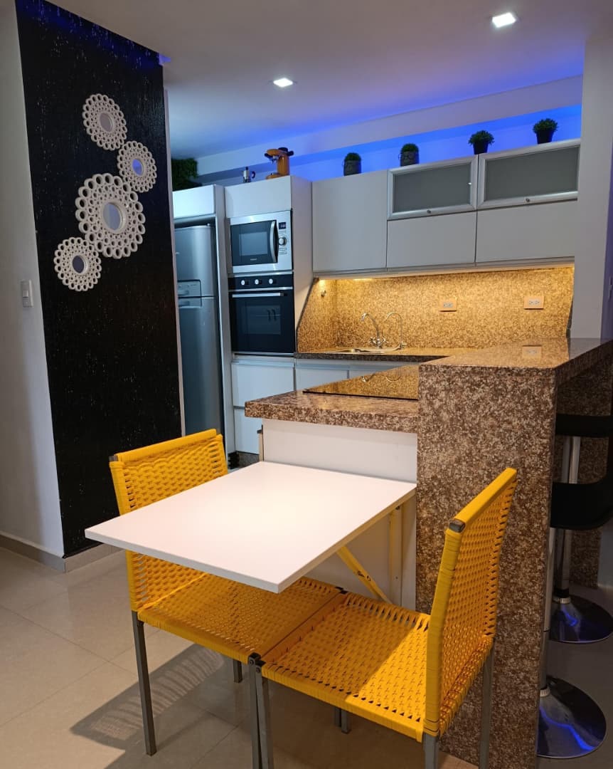 Disfruta de un hermoso, elegante y cómodo alojamiento, tranquilo y céntrico, con acceso a centros comerciales, clínicas, distrito gastronómico y todo tipo de comercio sin necesidad de vehículo. Solo a 100 mts de la Av. Bolivar Norte. La vista es hermosa y el ambiente insuperable.