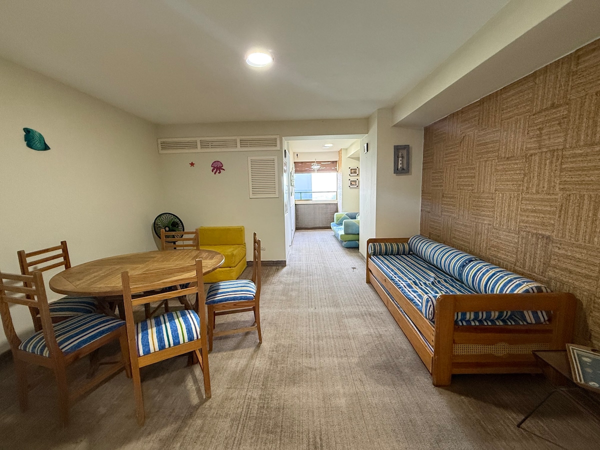 Cómodo y espacioso apartamento en Asocata (accesso privado a la playa) cuenta con 1 habitación con dos camas matrimoniales y baño privado y un amplio salón comedor con dos camas individuales y un segundo baño exterior. Capacidad máxima de 4 adultos y dos niños Cocina equipada, nevera, microondas, utensilios. La residencia cuenta con dos piscinas: niños y adultos, un caney con parrilleras y canchas deportivas. Un estacionamiento privado está incluido en su estadía. (Hasta dos vehículos máximo)
