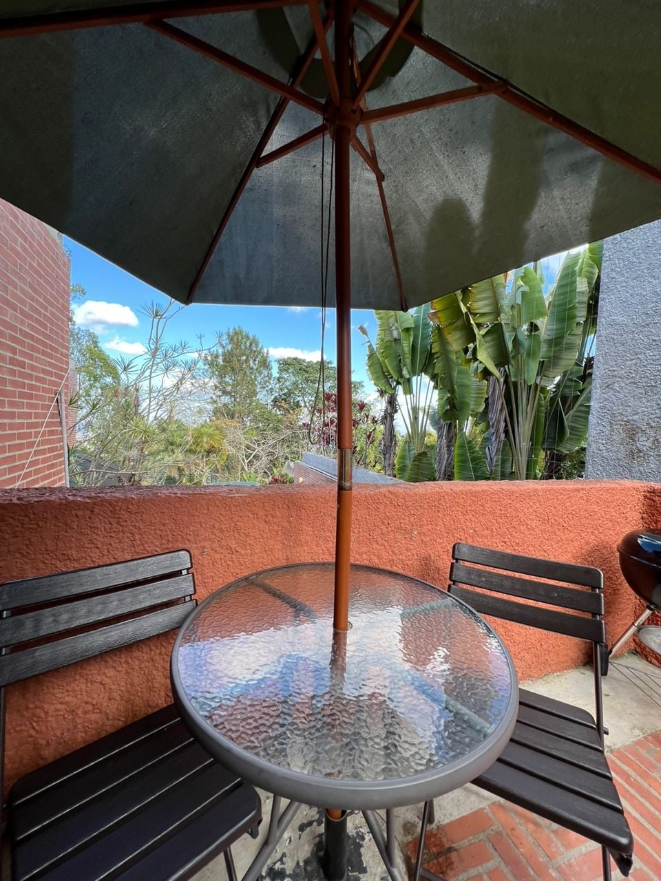 ✨ Suite acogedora con vistas a jardines y parrillera. Posee entrada independiente y un balcón privado ideal para el café. El suite cuenta con cama queen, A/C, persiana blackout. La sala es funcional, con mesa de doble uso (comedor/escritorio), y un comedor en el área de cocina. Equipada :2 opciones WiFi,smart TV + cable, cocina con horno, microondas y el gran plus de lavadora y secadora. Baño cómodo. Disfruta de un clima fresco de montaña y total tranquilidad en un ambiente seguro y remodelado.