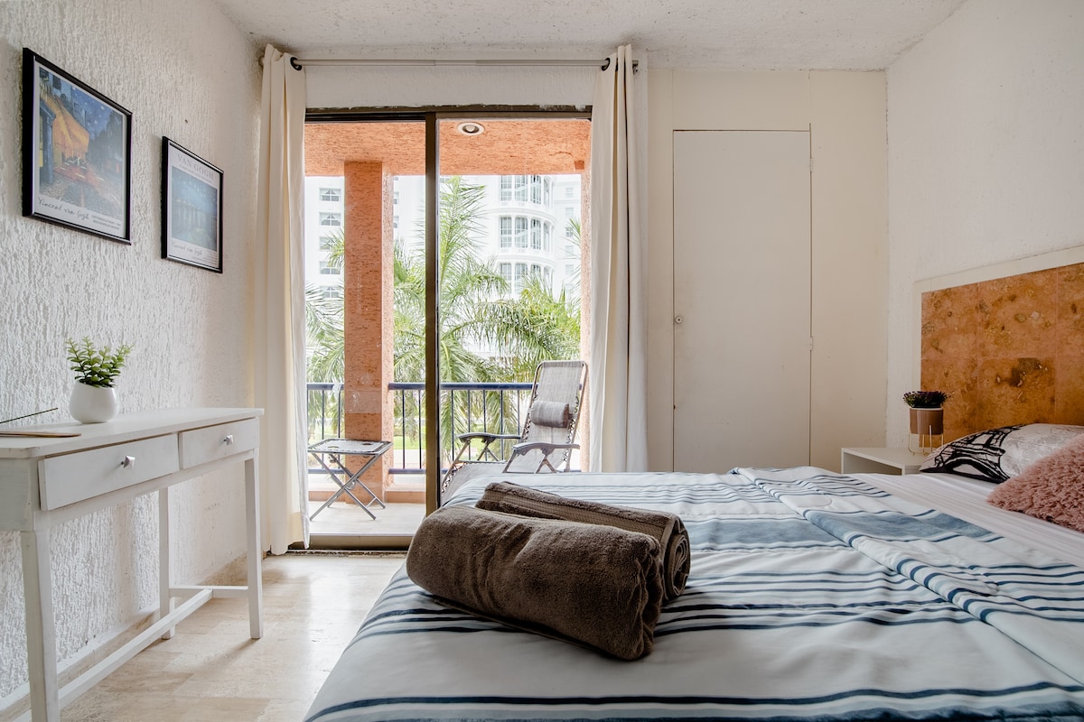 Incredible beachfront studio located at the heart of Cancun's Hotel Zone. Has an unbeatable location close to restaurants, nightlife, supermarkets, stores, car rental companies and everything you need to enjoy your stay. 24 hour security and reception, free parking, direct access to the beach, pool and a little gym.
