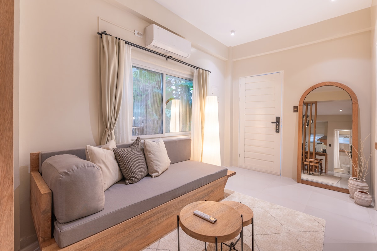 Unique 60 sqm boutique 1 bedroom unit centrally located in General Luna. Cafes, restaurants and the best surfing spots are located just 5 min away. As soon as you enter the unit, a sense of peace and relaxation invites you to enjoy all the amenities of the apartment. An equipped kitchen awaits if you feel like cooking! Tucked away in a small neighborhood makes this central location a great solution for people looking for a quiet, secure and well located accommodation in General Luna.