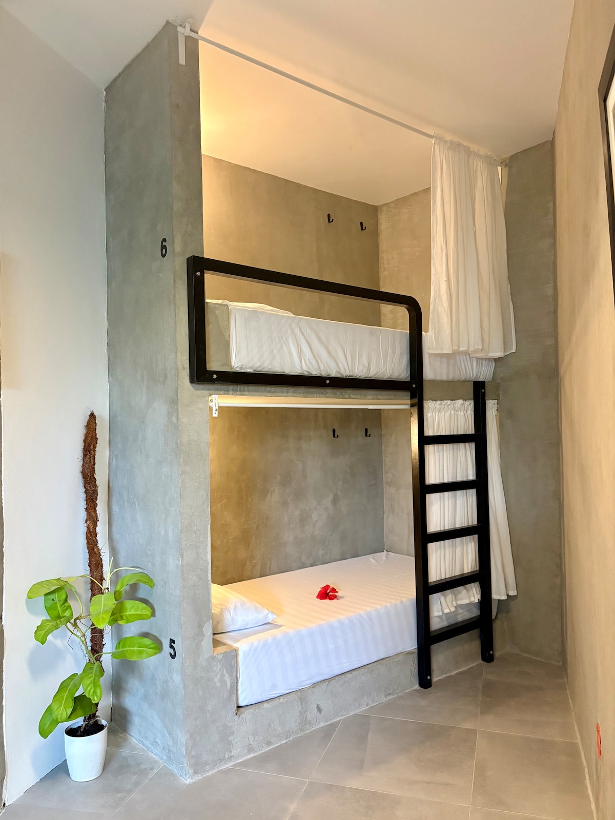 Stay in our safe and social all-girls 6-bed dorm, perfect for solo travelers and groups. Each bed has privacy curtains, outlets, and comfy linens. Guests enjoy A/C, fast WiFi, pool access, and a welcoming vibe. Located in the heart of Siargao, steps from restaurants, surf spots, and nightlife, with 24/7 reception and security. A peaceful, friendly space where women travelers can feel at home.