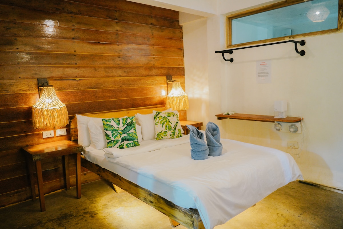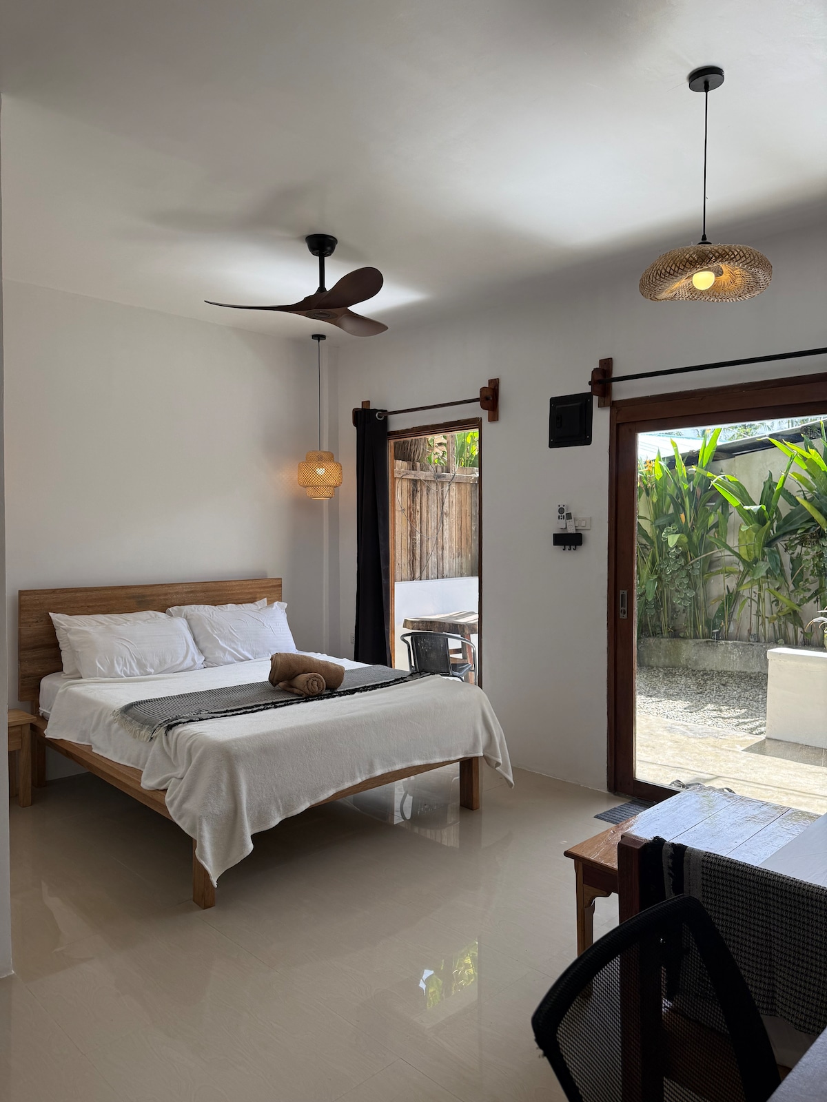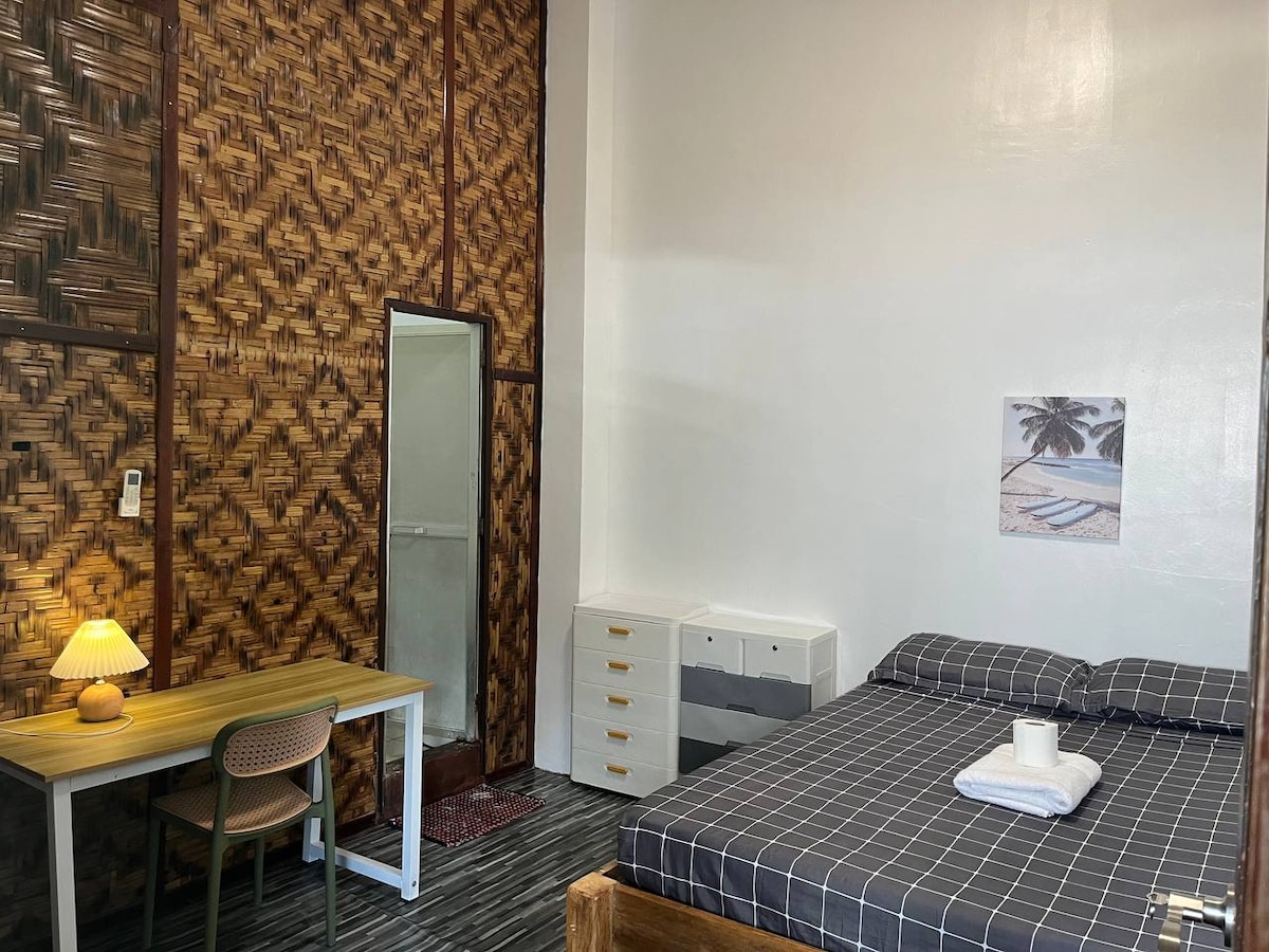 A cozy and homey space just 1 minute from the beach. This house includes: – Small kitchenette (rice cooker, kettle, fridge, single electric stovetop) – Private bathroom with hot water – Window-type aircon + electric fan – Rechargeable bedside lamps – A small speaker with a mic – A Comfortable queen-size bed with memory foam mattress – Surrounded by green plants and good vibes We live nearby and are happy to help with anything. Come as you are and enjoy island Life.