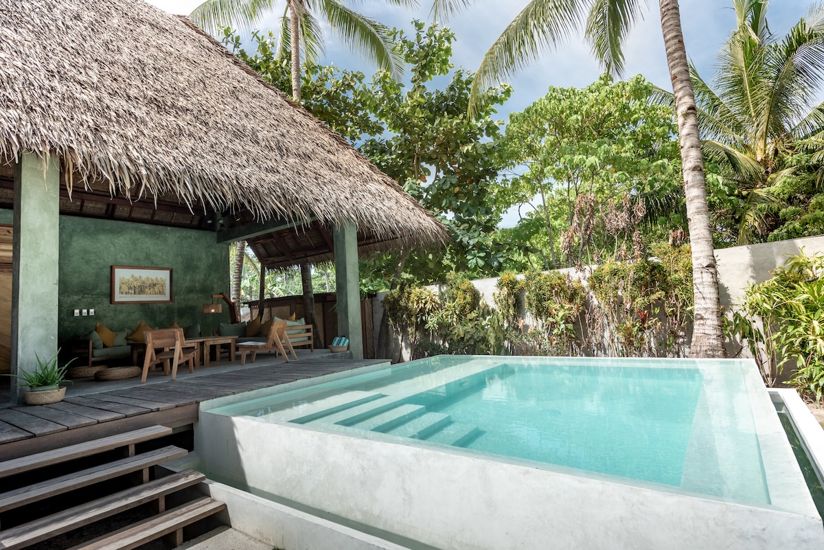 Wake up to palm trees, ocean breeze and birdsong... BAYAY TAMSI is a chill hilltop villa; cozy and bold in Filipino Tropic Mod style. An eclectic private escape, just 3 minutes from town center. The house has 2-bedrooms; flexible for those interested in a one-of-a-kind experience. Enjoy the private pool, spacious balcony, and lush jungle views — perfect for couples, friends, families & small events. NOTE: It's 100 steps up the hill for privacy and stunning views. We’ll assist with luggage!