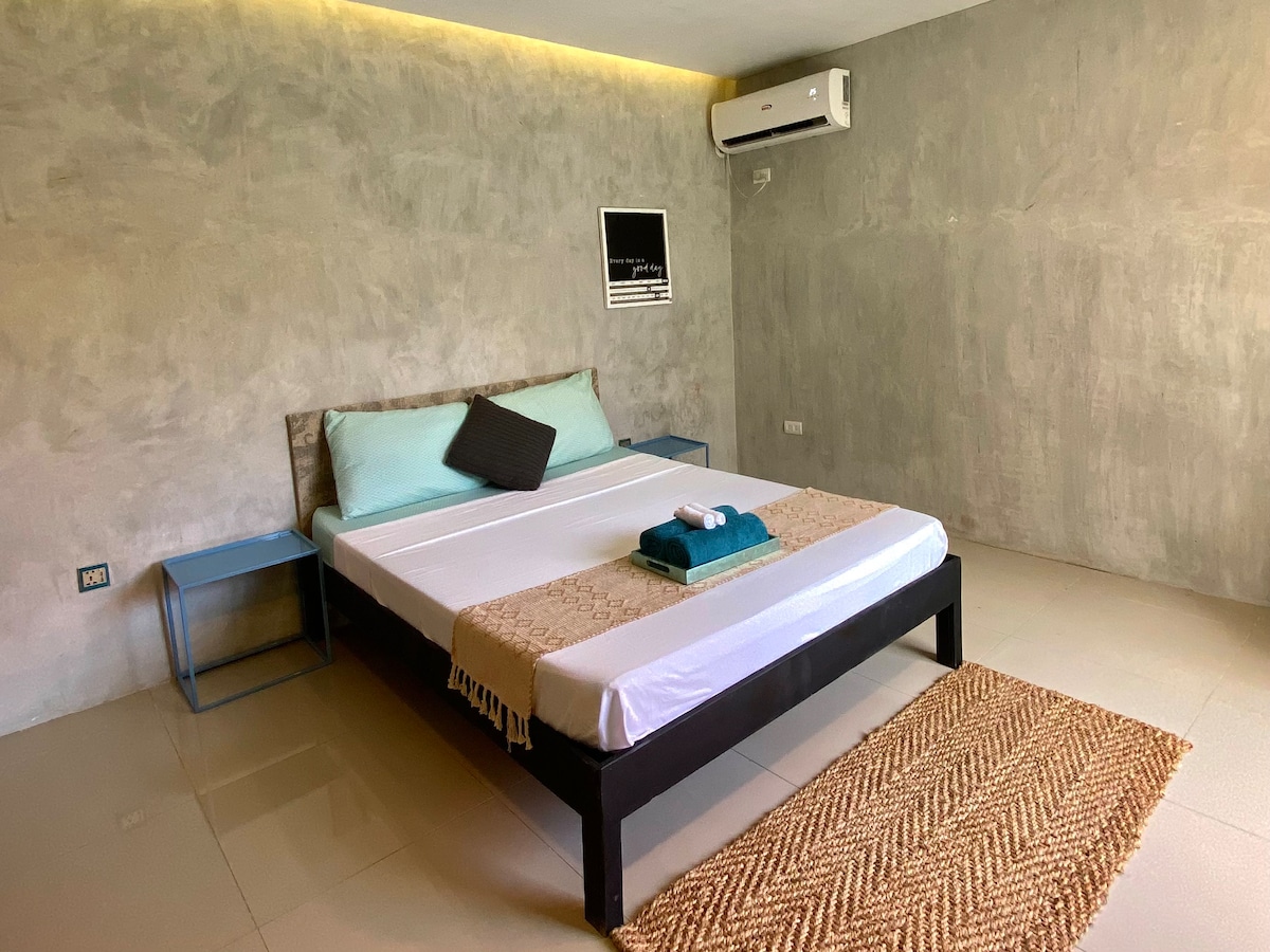 Relax with your loved ones in this peaceful vacation home private bedroom. This property is a 15 minute walk from the New Tourism Road (or 5 minute ride via motor vehicle.) Great place to unwind after a day of enjoying the beaches and nightlife of Siargao. Enjoy a private bathroom, air conditioning, shared pool, and shared outdoor kitchen.