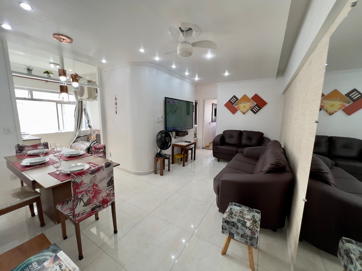 Apartamento aconchegante e recém reformado em frente para a praia Martim de Sá, com ar condicionado na sala e nos dois quartos, e TV de 42 polegadas com Netflix liberada para vocês assistirem. Nosso apartamento não tem vista para a praia, mas assim que você sair do prédio, é só atravessar a rua que você já estará na praia sem a necessidade de ficar se deslocando de carro e pegar trânsito. Temos preferência de locação para casais e famílias. Não alugamos para grupos.