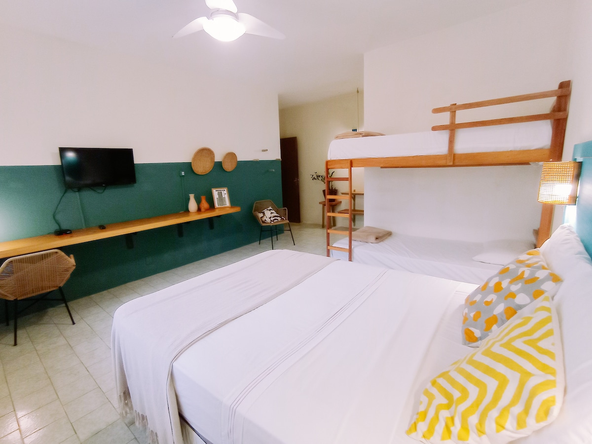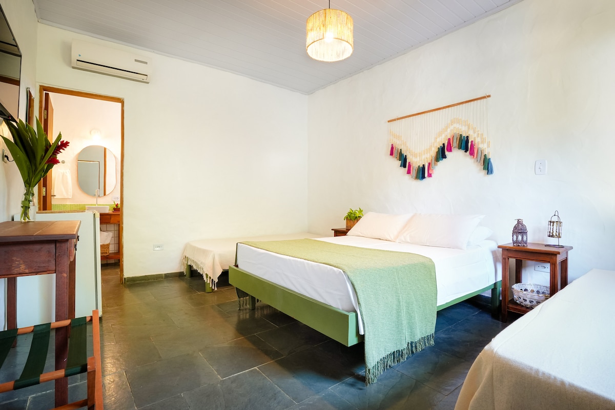 Cozy, Practical and with Breakfast Included in All Rates! The Standard Room is ideal for small families or groups of friends. Located on the ground floor, this accommodation offers a queen size bed and two single beds, split air conditioning, ceiling fan, LED TV, Wi-Fi, minibar, wardrobe or closet, standard pillow, bed linen, towels and a full private bathroom. Accommodates up to 4 people.