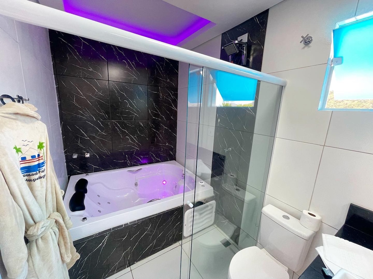 Suíte com vista para a belíssima praia das Cigarras, banheira com hidromassagem.