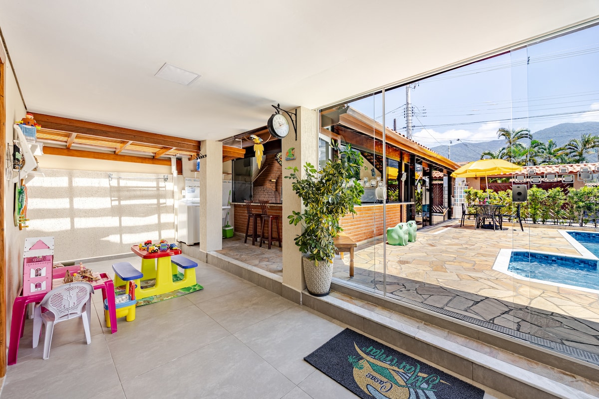 🏡A Casa Tranquilidade é um sobrado aconchegante na Praia Massaguaçu, a apenas 1.200m do mar (3 minutos de carro). Localizada em condomínio tranquilo, com ótima infraestrutura e comércios próximos. Ideal para família, amigos ou casal. Espaço completo com área gourmet churrasqueira privativa. Oferecemos roupas de cama, toalhas de banho, cadeiras de praia, guarda-sol, cooler. Wi-Fi, cozinha equipada, sala com TV 43". 1 vaga de garagem, para você aproveitar cada momento com com conforto.