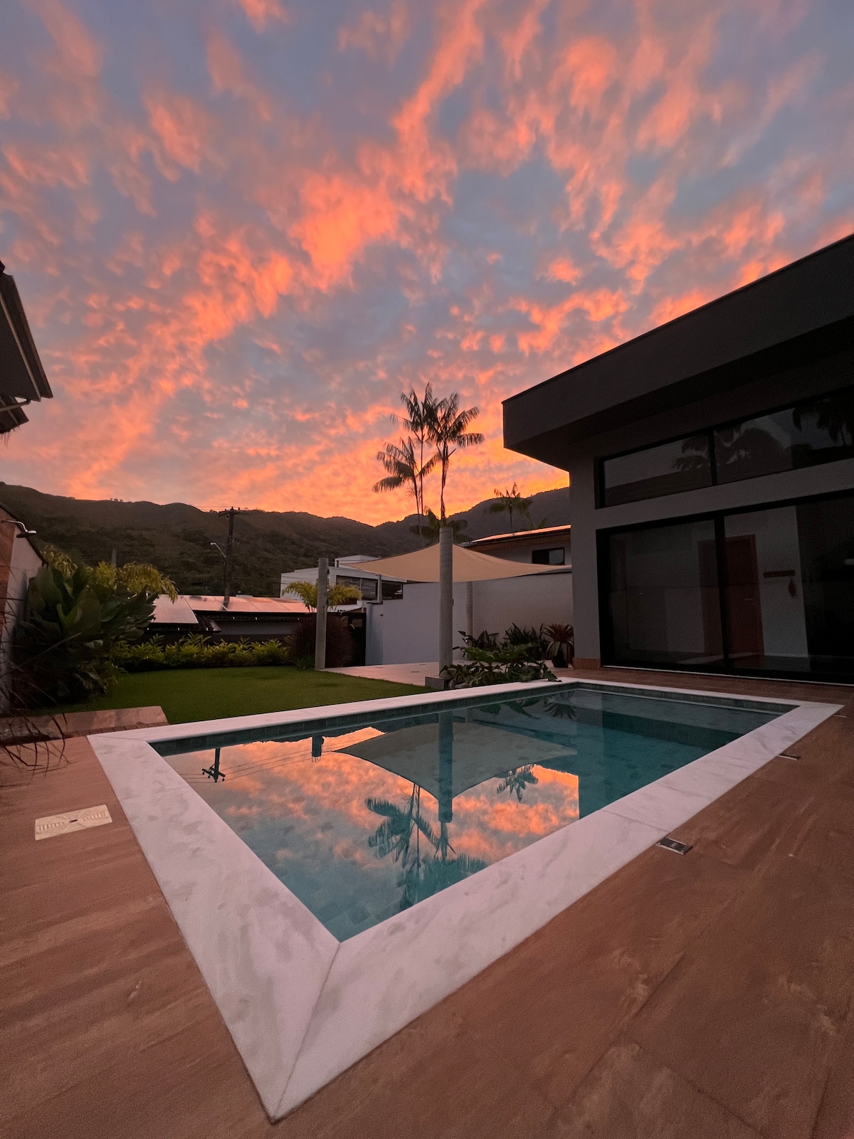 Immerse yourself in unique moments at this seaside retreat, just 40 meters from the beach, surrounded by the lush Atlantic Forest. Your stay in this contemporary sanctuary not only offers proximity to preserved nature but also modern comfort in a brand-new construction. After a day at the beach or exploring the Atlantic Forest, unwind in the jacuzzi, savoring the sea breeze, or gather around the outdoor fireplace for cozy evenings.