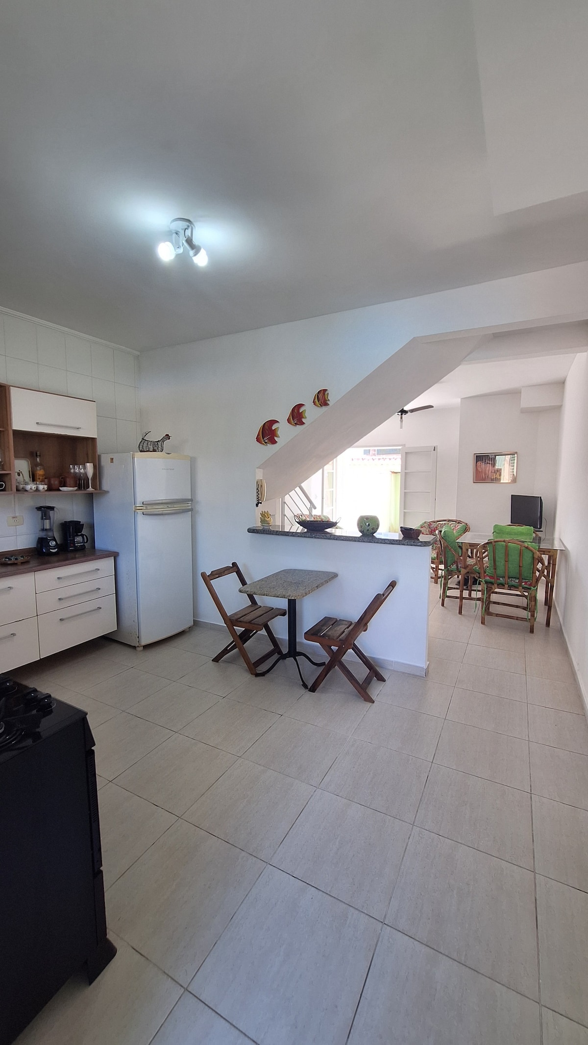 Ambiente familiar! Casinha com 2 Andares: - O primeiro andar tem uma sala e cozinha estilo americana completa com fogão, frigobar, panelas, frigideiras, liquidificador, microondas. - O segundo andar tem um dormitório e banheiro. Da janela do quarto tem vista do mar e da Praia Martim de Sá. Wi-Fi, Smart-TV, Ar condicionado split, garagem. Espaco cobertura com sofas em frente da casa. Espaço gourmet com Churrasqueira, forno à lenha e pizza. Deck do Piscina e uma plataforma na montanha.