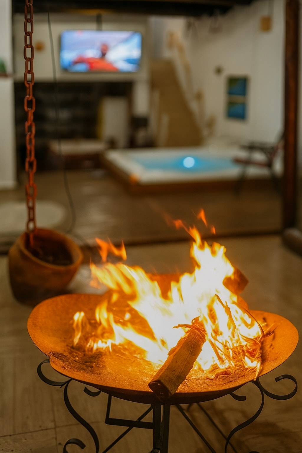 Complexo com 4 Chalés em Condomínio fechado. Local muito tranquilo em meio a natureza, portaria 24hs, segurança e tranquilidade.Tudo novinho! Composto por cama de casal, bi-cama solteiro, TV 32", Chromecast, ventilador, wi-fi, banheiro privativo, terraço, no 1º andar, balcão em mármore, Cozinha com Cooktop, geladeira, microondas utensílios de cozinha, água filtrada. Chalé Lindo com terraço e vista para natureza! Parquinho e piscinas "naturais" no condomínio . Anfitriões no local!