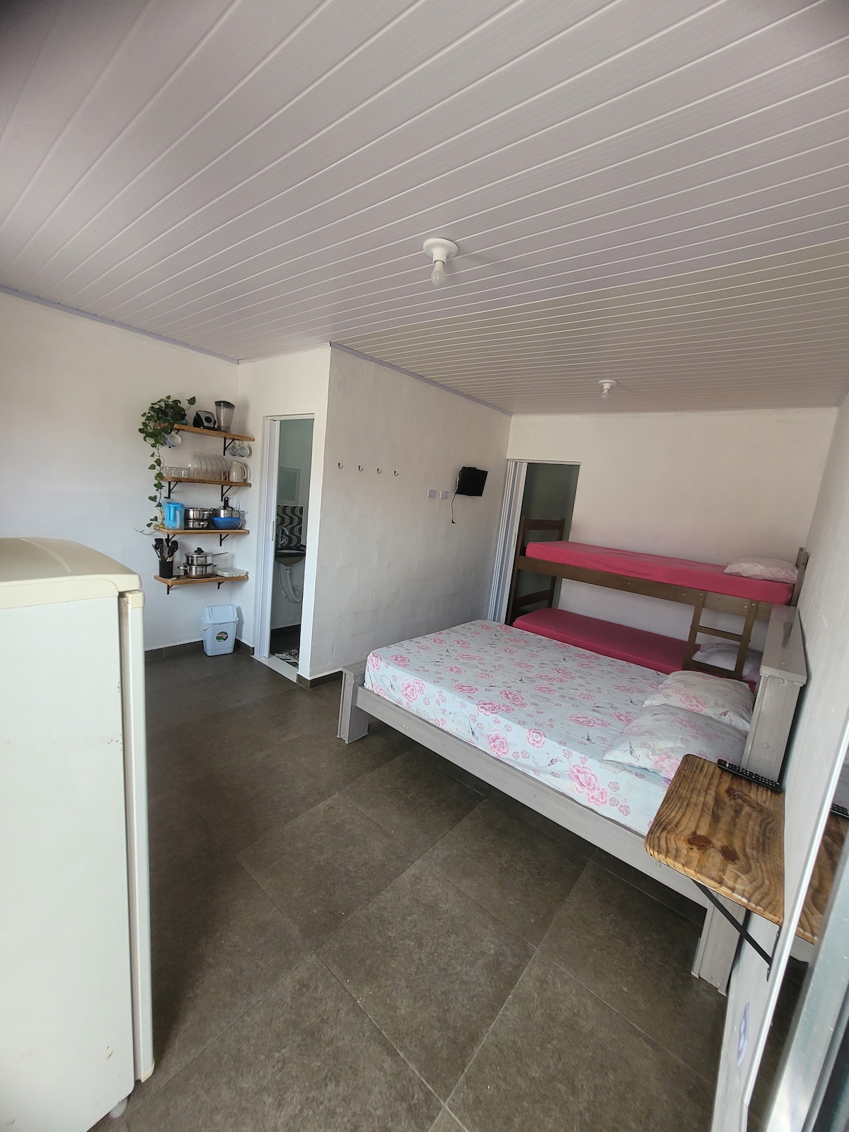 Chalé charmoso com uma suíte e uma saleta, um banheiro, ventilador de teto, tv a cabo, Wi-Fi vivo fibra 30mb, frigobar, fogão, pia e utensílios de cozinha em geral, ao lado da cachoeira, próximo ao centro comercial com mercados, farmácias e a 1km da Praia do Perequê. Não tem garagem, mas é possível estacionar ao lado da casa. Venha dormir em um local tranquilo e em meio à natureza, pertinho de tudo, rua plana e calçada, de fácil acesso. Próximo tem aluguel de bike e ponto de ônibus.