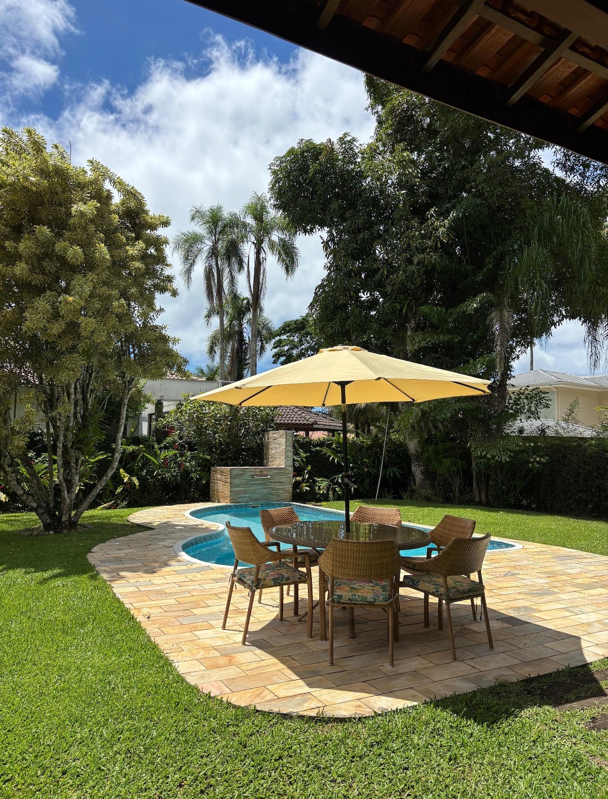 Imagine-se em um lugar onde tudo foi preparado com capricho, para que você tenha uma experiência única: os ares de uma chácara mesclados às belezas do mar e em uma localização de fácil acesso, próxima à rodovia. Esta é a Casa das Mangueiras! Situada entre um bosque de mangueiras e a praia, a casa proporciona um ambiente tranquilo, reservado e com uma piscina aquecida exclusiva para você. Namaste. Aceitamos 1 pet por estadia até 20 kg.
