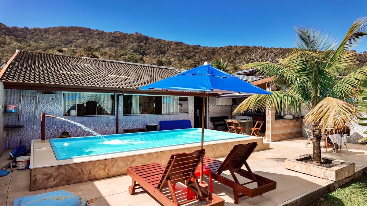 Casa de 120 m² em meio à natureza do antigo parque aquático de Ilhabela, com 2 suítes aconchegantes com Smart TV 43" e ar quente/frio. Sala charmosa com Smart TV 65" e ar quente/frio. Cozinha completa com geladeira grande 430L Panasonic, Wi-Fi fibra 1000 Mbps e quintal privativo com churrasqueira e piscina natural privada. No andar superior, suíte com cama king com vista as estrelas, banheira e varanda. Varanda ampla com sinuca, rede e ponte para o mirante das cachoeiras.