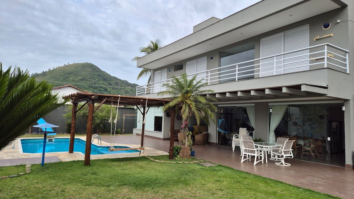 A place with the most incredible view of the sea, views of Flamengo Bay, Anchieta Island, Santa Rita Beach, Lamberto, Ribeira and others… With a private trail in the Atlantic Forest, 2 incredible viewpoints, small waterfalls with crystal clear water! With security and privacy, the Greece-themed house has a comfortable and structured 300m2, airy and fresh and with new air conditioning in all bedrooms. The closest beach is Lamberto Beach, you have to walk 400m, but we recommend going by car!