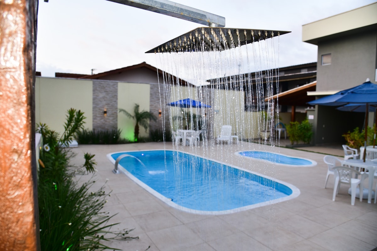 O studio conta com uma vista única desde a porta de entrada, e em todos os cômodos, cama, chuveiro e para completar a vista na hidromassagem exclusiva no deck privado de tirar o fôlego. Tudo para deixar sua viagem inesquecível! Além do maravilhoso espaço compartilhado com piscina aquecida borda infinita, jacuzzi, deck para tomar sol e gazebo para relaxar. Sala de jogos com bilhar, ping pong e cartas. A entrada é compartilhada e o caminho para o studio é pela area da piscina e deck compartilhado.