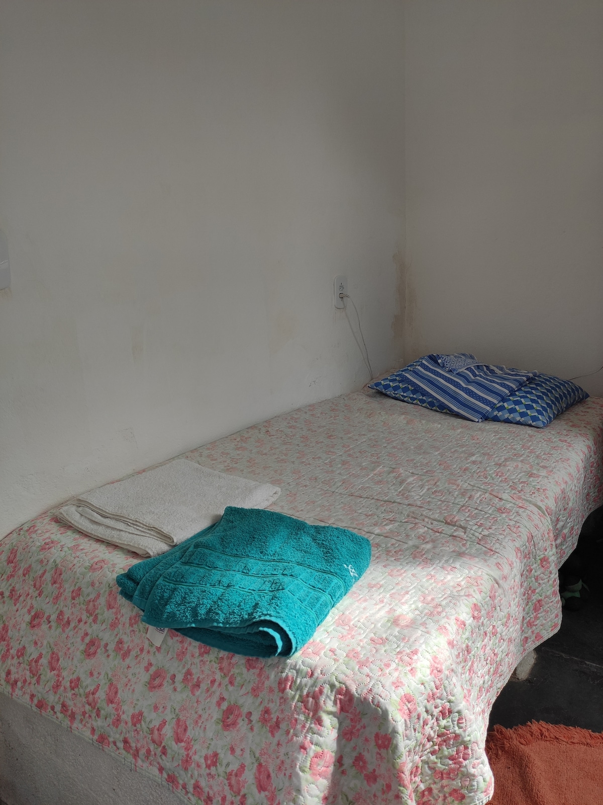 Suíte pequena e aconchegante (quarto com banheiro individual) com ar condicionado, cama de casal tamanho Queen, super confortável com muita privacidade. A suíte ainda tem uma cama de solteiro, se precisar de um espaço a mais para familiares .Lençóis de Percal 100% algodão, de pelo menos 200 fios, toalhas de banho. A suite está equipada com um frigobar. A rua é tranquila e permite estacionar com segurança.A casa possui apenas duas vagas de carro no estacionamento,o uso é por ordem de chegada.