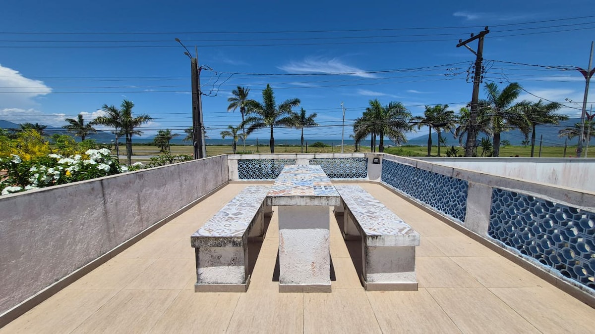 RUA 06, LADO PRAIA - A 4 MINUTOS DA PRAIA A PÉ!! Nossa suíte mais espaçosa com cama queen size, ar condicionado, frigobar 71L e SmarTV 32', pertinho de uma das mais lindas praias de Ubatuba. Cozinha compartilhada totalmente equipada para preparar refeições. Espaço no deck exclusivo com mesa e 4 cadeiras. Ótimo para "home"office, no deck ou dentro da suíte! Disponibilizamos roupas de cama e banho de qualidade. Conforto, aconchego, privacidade! Você vai se sentir em casa!!