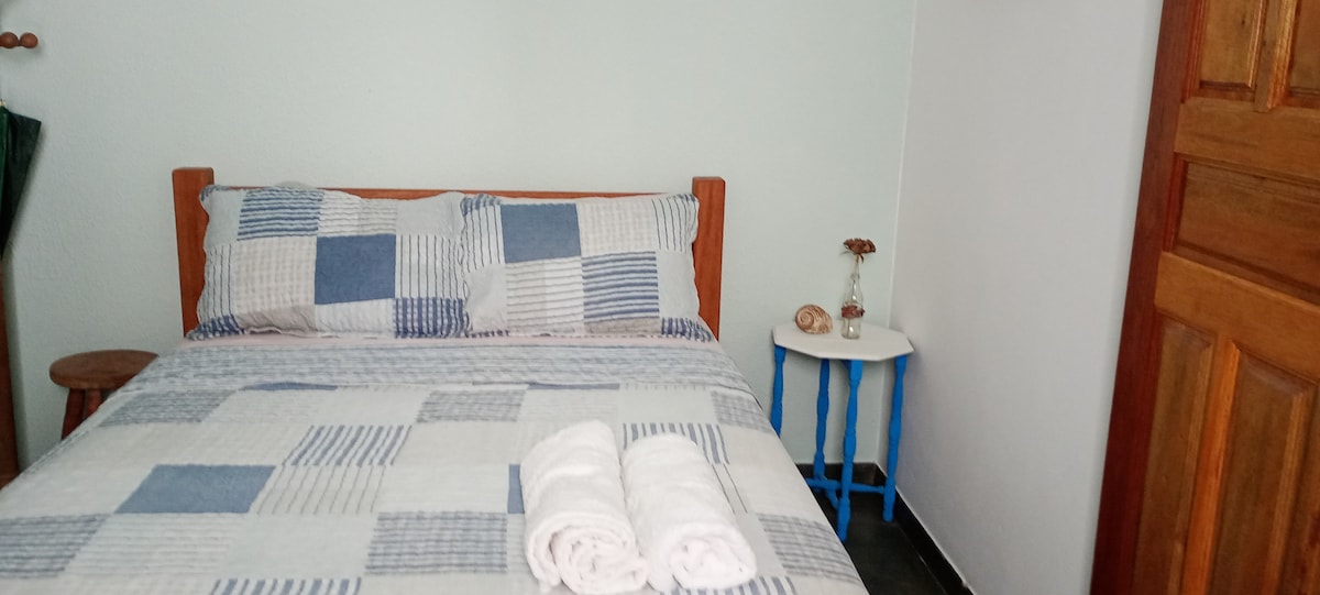 Nossa propriedade é um sítio rodeado de natureza, onde está localizado nossa moradia. Temos vista privilegiada para o mar Acomoda 2 pessoas. Temos ar condicionado, ventilador de teto, cozinha equipada com utensílios, frigobar e cooktop. Estamos a 300 m da praia da Ilha das Cabras. Não permitimos som alto, churrasqueiras Check-in a partir das 17 e check-out até as 13 hs, podendo ser ajustável, conforme a disponibilidade. Temos escadas para subir.