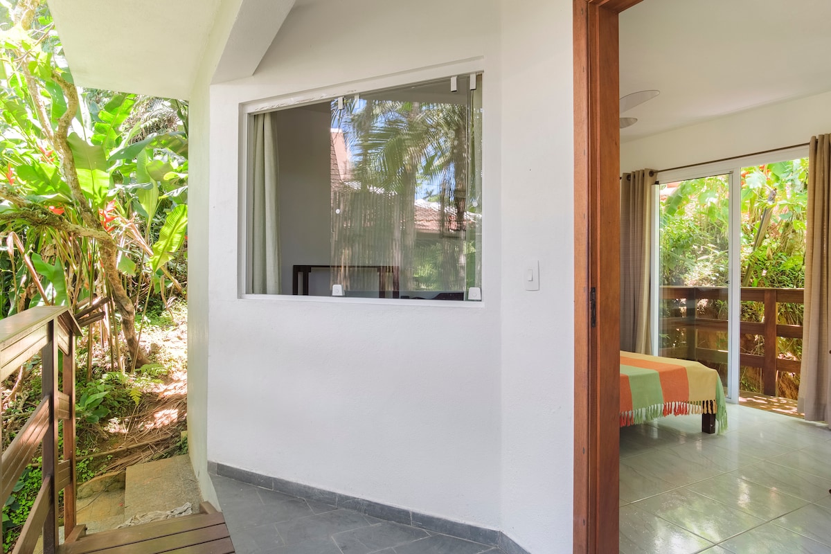 Suíte perfeita para casais que procuram por tranquilidade na praia. 10 minutos do centro da cidade de São Sebastião. O quarto possui uma cama queen e ventilador de teto. A casa possui WIFI e acesso a muitos canais de TV. Area externa compartilhada A cozinha está equipada com pia, armários, microondas, sanduicheira, frigobar e cafeteira. Ja incluso roupa de cama, toalha de rosto e toalha de banho limpas para uso. OBS. Não tem fogão *Infelizmente não aceito animais*