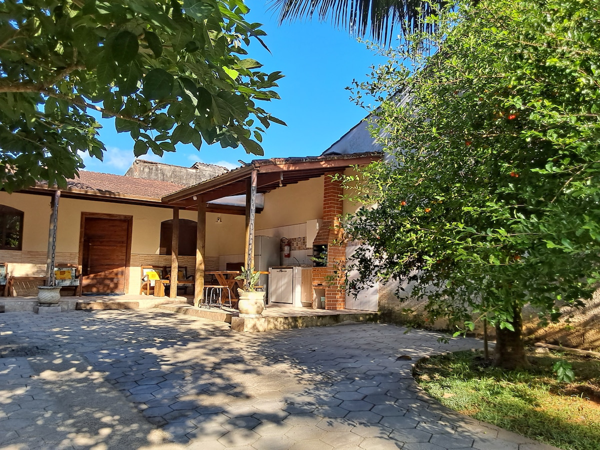 Lugar tranquilo com vista para montanhas e vista mais distante para o mar, varanda dos sonhos, casa com 3 suítes e 4 banheiros com cozinha americana... Fica a poucos metros da praia, lugar para família e sossego, lugar agradável a todos especialmente tranquilo para crianças, imóvel recém reformado isolado em rua particular espaço para 3 ou 4 carros, ducha externa, tv a cabo, Wi-fi, geladeira, micro-ondas 3 camas de casal mais 3 beliches lugar especial com descanso e diversão garantidos.