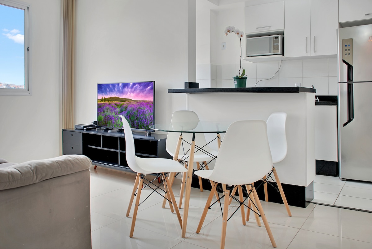 Modern flat in Bela Vista, the best and most strategic area of Osasco! Close to Melicidade, Ifood, and Bradesco (Cidade de Deus), with easy access to São Paulo’s West Zone. Safe, well-equipped, and designed for your comfort and convenience — perfect for work or leisure stays. On the ground floor, enjoy a restaurant and Oz Comedy Club, so you can dine and unwind without leaving the building.