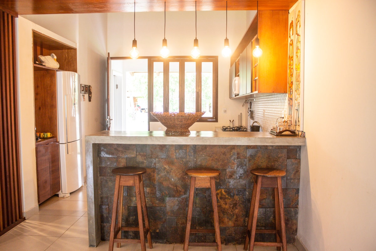 Casa, piscina e lagoa em frente ao mar pé na areia
