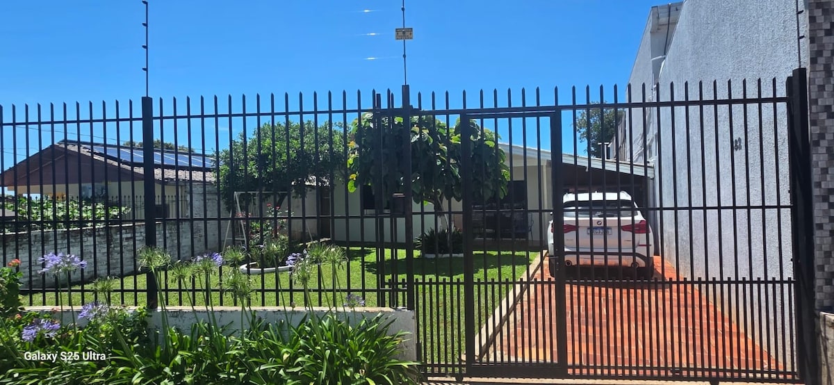 Casa com 2 dormitórios | Ar-condicionado em ambos + Wi-Fi 2 dormitórios com cama de casal e ar-condicionado 2 colchões extras Banheiro com chuveiro quente e toalhas Cozinha externa coberta, equipada com todos os eletrodomésticos e churrasqueira Proprietário mora em casa separada no mesmo pátio Garagem para até 3 carros Para mais de 2 hospedes o valor tem reajuste Próxima ao centro, farmácia e mercado. Check-in e check-out 15h (pode ser combinado )