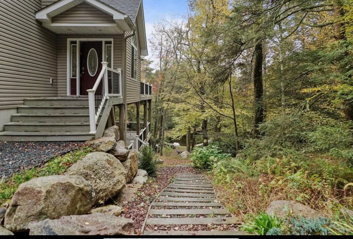 Situated in amenity filled Indian Mountain Lakes, close to premier ski resorts, our home is the perfect home base featuring: ✨Hot Tub ✨Indoor fireplace ✨Lake Access with sandy beach ✨Expansive deck area ✨Ample Parking ✨Fully equipped + stocked kitchen ✨Onsite washer + dryer ✨Hi speed internet 📍15 minutes to Big Boulder Ski Resort 📍5 minutes from Skirmish Paintball 📍30 minutes to Camelback Mountain