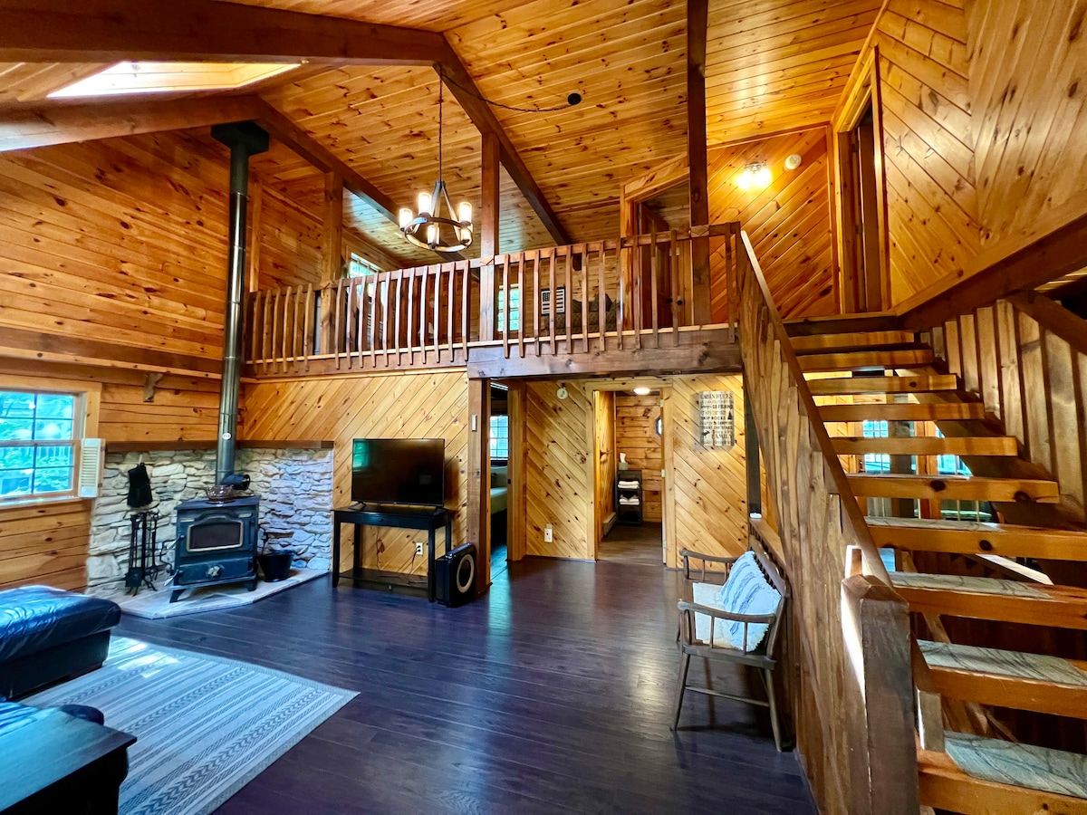 If you are looking for a quiet and intimate getaway or adventure, this is it! Step into this unique log sided cabin with all the Pocono's aesthetic you could want. Relax & recharge in the open concept knotty pine kitchen and living room. The vaulted loft provides an open & airy feel. The bedrooms feature brand new beds and large closets. The kitchen is well stocked and the living room features a wood burning fire place, Roku TV, two couches, a DVD collection, Nintendo 64 and boardgames.
