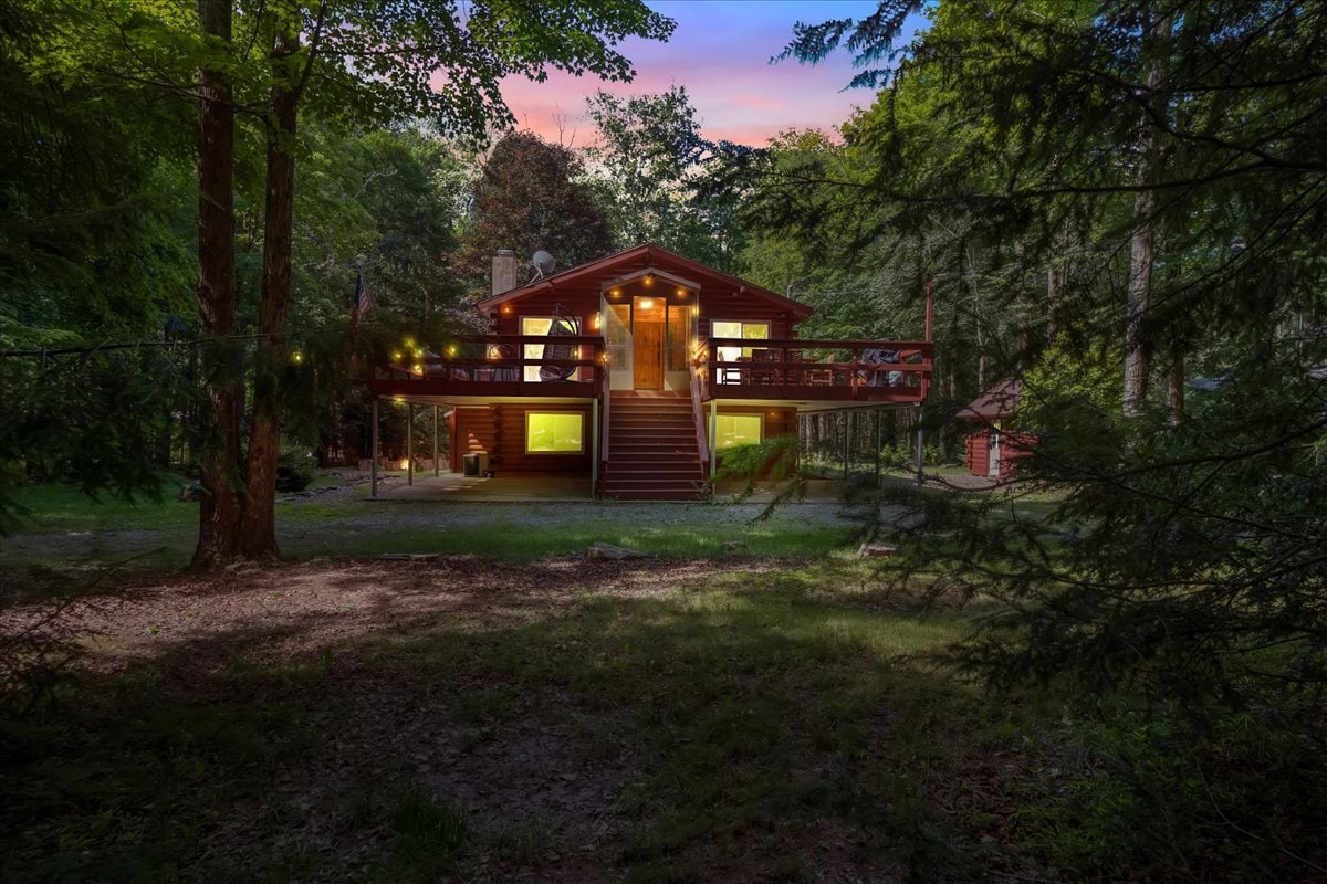 Newly renovated 4BR/3BA chalet on 10 private wooded acres in the Pocono Mountains. Sleeps up to 12 guests and is packed with amenities: a sauna, indoor fireplace, outdoor fire pit, two dedicated workstations with fast Wi-Fi, a yoga space, sunroom, and a fully stocked kitchen. Whether you’re seeking adventure or relaxation, you'll have quick access to the Pocono Mountains top attractions—whitewater rafting on the Lehigh River and skiing at Blue Mountain, Camelback, Jack Frost, or Bear Creek.