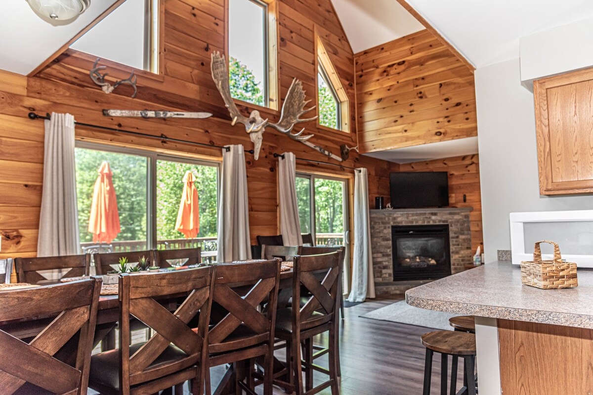 Peaceful Mountain Retreat • Hike straight from the backyard – blissful mountain views • 8 beds: 5 beds, 3 sofa beds, 1 air mattress • 4th bedroom is open-concept – great for groups • Sauna, hot tub & firepit for ultimate relaxation • Game haven: pool, ping pong, darts, arcade, console & more • 2 Smart TVs & fast WiFi • Deck w/ grill, hammock, swing set & basketball hoop • Access to 2 pools, tennis, basketball & 5 lakes • Near multiple ski slopes