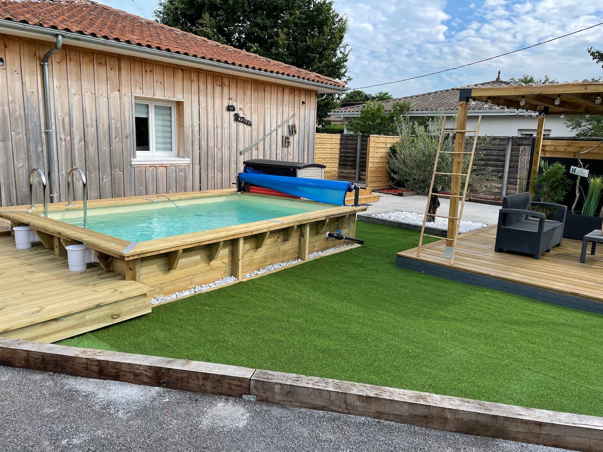 Au cœur du Bassin d'Arcachon, chalet de 49m² avec terrasse couverte, situé sur la propriété d'une villa. A 1 km de tous les commerces, des pistes cyclables, des parcs de loisirs, à 10km d'Arcachon, à 12km de la Dune du Pilat et plages océanes. Cuisine équipée, SDB, WC, douche, serviettes,lave linge. 2 chambres lits 160x200 avec draps. Petit jardin privatif, transats, plancha,parking privé fermé avec vidéo JACUZZI FERMÉ DE NOV À AVRIL, en supplément de 20€ la séance et uniquement sur réservation