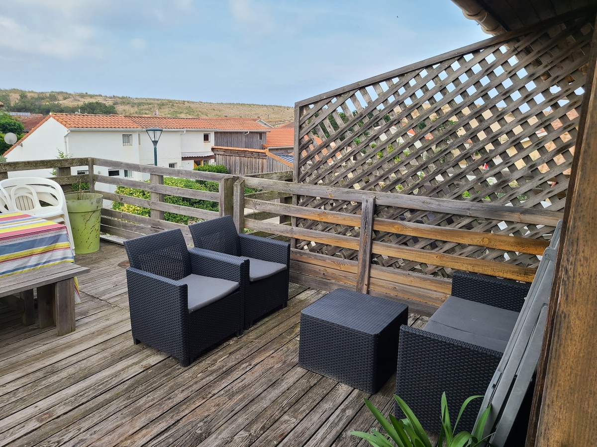 À 100m de la plage, ce logement lumineux de 85m² entièrement refait à neuf par un architecte, est idéalement situé au coeur de Lacanau Océan. Cet appartement décoré avec le plus grand soin possède 2 chambres, 2 salles de bain et dispose de 2 lits et d'un canapé-lit (jusqu'à 5 personnes). maximun Il est idéal pour les familles où les groupes d'amis. Wi-Fi, Netflix, place de parking, ventilateurs.. Tout y est, vous allez vous y sentir comme chez vous !
