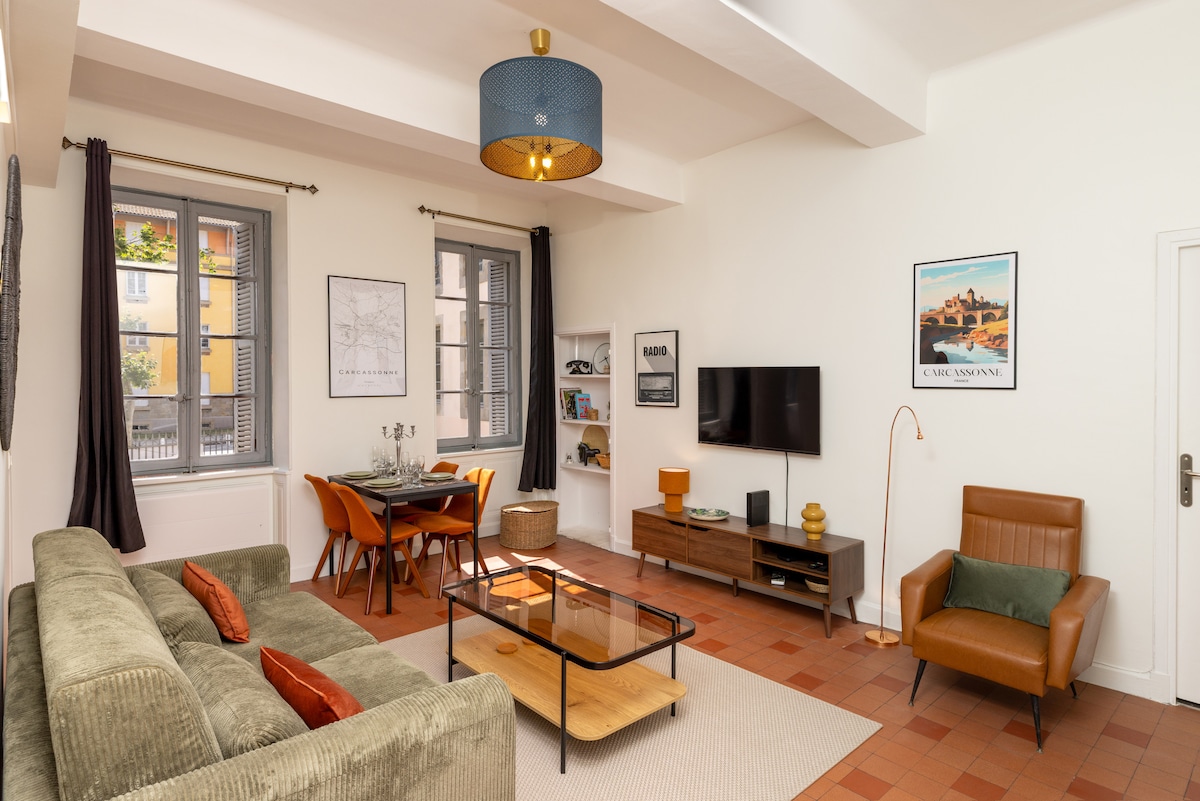 ✨Charmant appartement donnant sur cour pour 4 personnes, dans un immeuble calme et sécurisé. Entrée autonome grâce à une boîte à clés : vous arrivez à l’heure qui vous convient. ❤️Prestations : Climatisation, TV Netflix, machine à laver, cuisine équipée (micro-ondes, réfrigérateur, cafetière Senseo avec dosettes), lit bébé (sur demande). Draps et serviettes fournis gratuitement. Animaux admis. Entre la Cité médiévale à 10 min à pied et le centre ville à 2 min, la gare est à 15 min.
