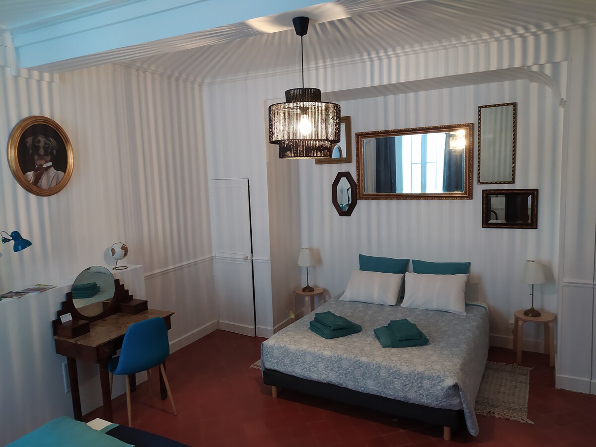 La chambre, spacieuse (23m2)se trouve au 1er étage d’un loft atelier d’artistes ( stages sculpture /céramique) : entrée indépendante, salle d’eau, WC, douche. Au rez-de-chaussée, petit déjeuner, produits locaux et confitures maison. Vous disposez d’un espace cuisine privé avec réfrigérateur et petit salon.(32m2) ainsi que lave linge. The room, spacious has a shower room. Breakfast, whith local products. Private kitchen area with fridge and living room.