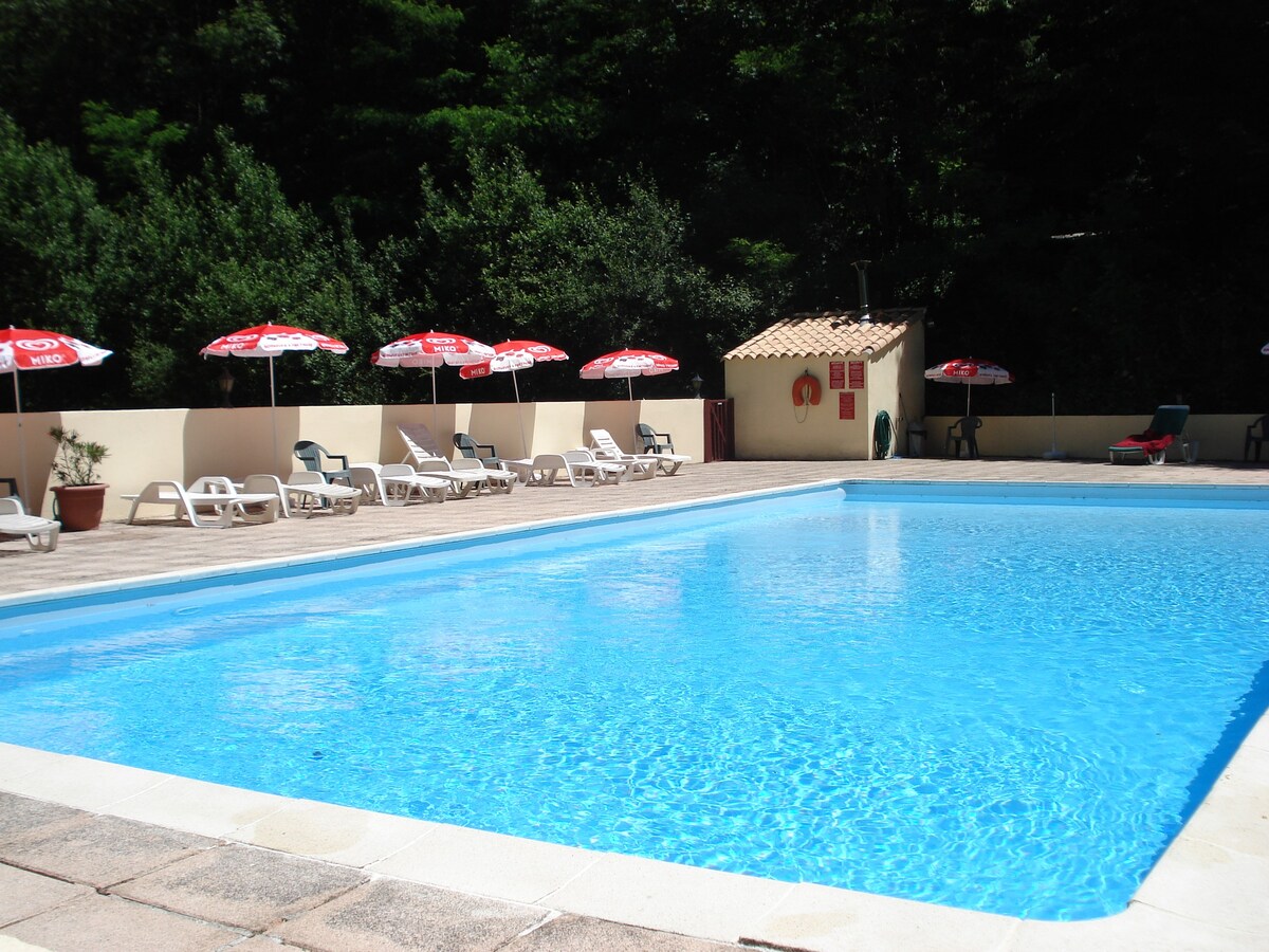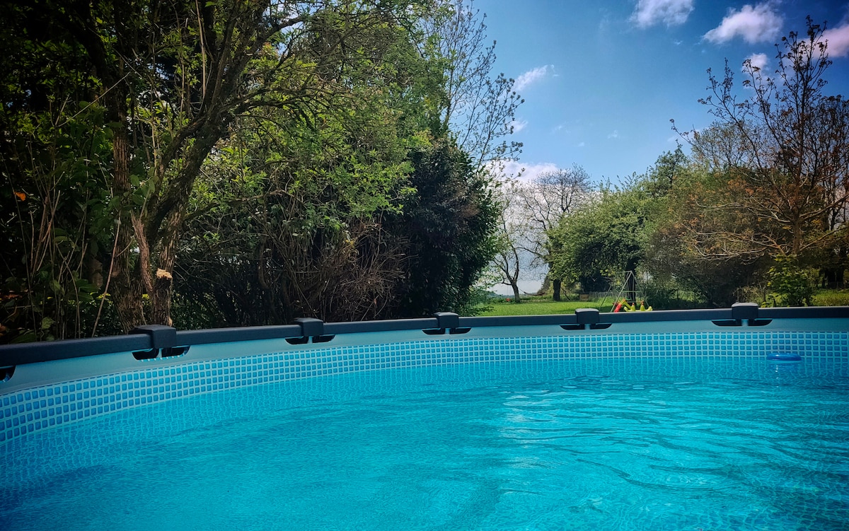 迷人安静的小屋,可供6人入住,配备大型泳池