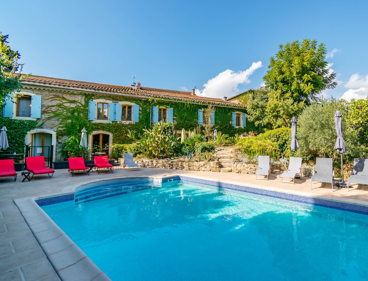 法式石屋,带泳池,位于田园诗般的村庄。