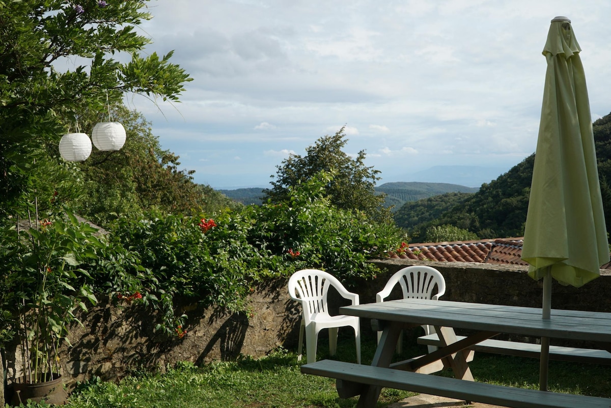 Gîte niché dans une nature verdoyante et préservée, au cœur d’un parc naturel de 85 hectares et aux portes de la Montagne Noire. Le gîte dispose d’une vue imprenable sur la chaîne de Pyrénées ainsi que Carcassonne et sa Cité. Une grande terrasse en pierre ombragée vous permettra de profiter de ce cadre exceptionnel tout au long de votre séjour. Au départ du site, plusieurs sentiers de randonnées sont accessibles immédiatement. Le lac des Montagnes est à moins de 15 minutes en voiture.
