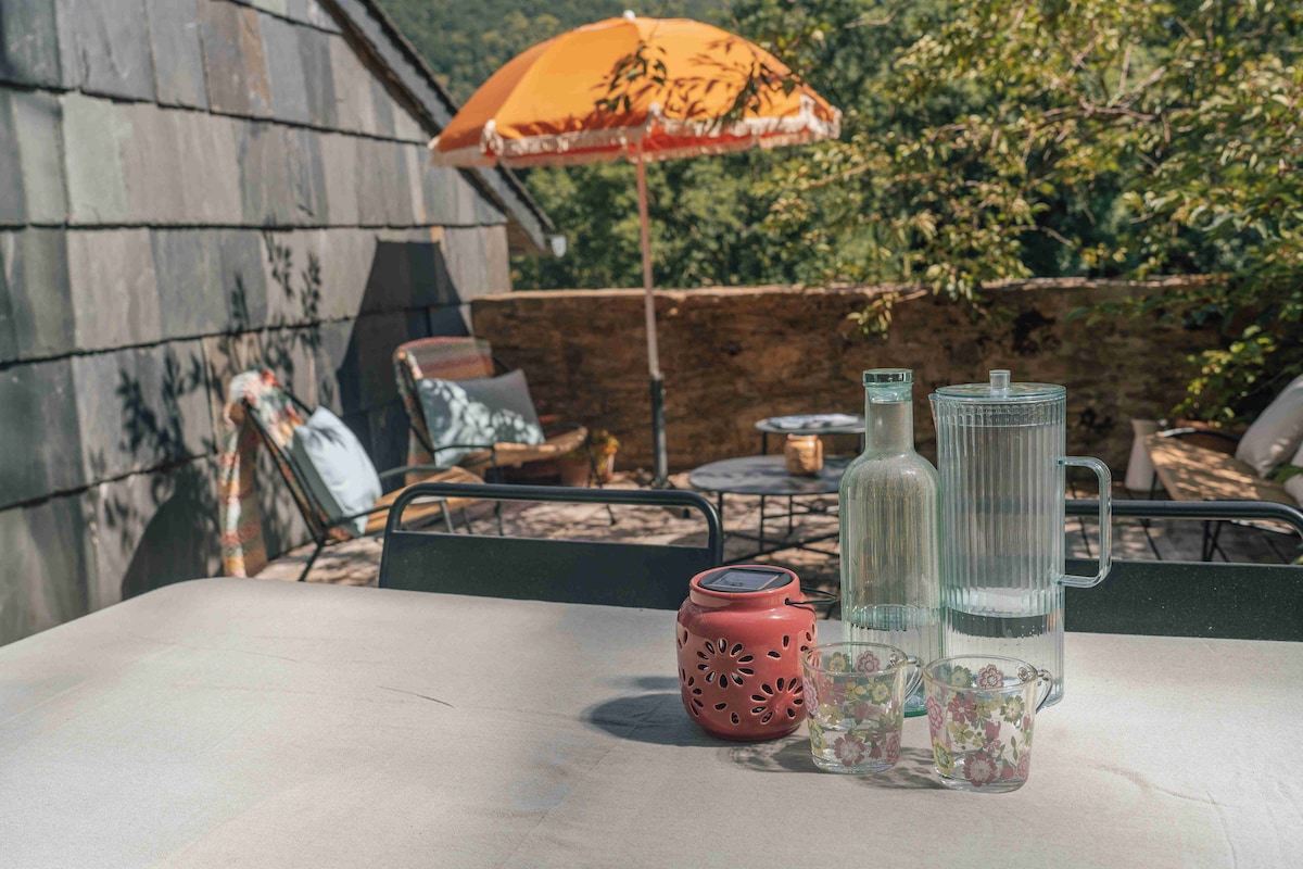 Domaine Fount Estremiero includes 4 B&B rooms and 1 gîte. The gîte has a private entrance and private terrace. The rest of the outdoor area with heated pool, jacuzzi, sauna, and hammam, is shared with the B&B. The gîte consists of a living room with dining table, bathroom with bath and shower, a fully equipped kitchen, a bedroom with bunk beds and a bedroom with a double bed. Airco and heating are available. Towels, bed linens, soaps, parking, Wi-Fi, electricity, and spa access are included.