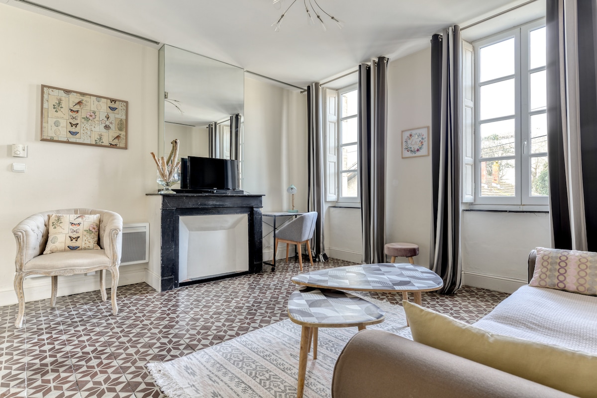 Immeuble de standing classé aux Bâtiments de France, au cœur de la Bastide, dans une rue calme, à côté de la place Carnot, des restaurants, épicerie et boulangerie. Stationnement dans les rues ou grand parking à 100m à côté de la Cathédrale ou parkings Jacobins. *Gare 10 min à pieds *Aéroport 10 min en voiture Navette gare-aéroport. *Canal du midi à 750m *Pont médiéval piéton (datant de 1315) à 700m *Château comtal et la cité médiévale à 1,5km *La Basilique Saint-Nazaire à 1,5km
